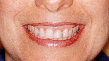 A 42-year-old female patient was referred to our clinic at the School of Dentistry of the University of São Paulo in November 2004, presenting a deficient restoration in the upper left central incisor. The clinical examination revealed no gingival retraction or any signs of gingival inflammation and, therefore, previous periodontal treatment was not considered. The patient presented a high lip line at full smile and a thin tissue biotype. This combination characterized a high-risk situation from an anatomic point of view, which required careful preoperative planning and cautious surgical execution.