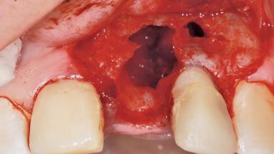 A 36-year-old female patient was referred for the replacement of the upper left central incisor (tooth 21), which had fractured. Although the tooth had been asymptomatic for many years, the crown began to loosen, at which time she presented to her dentist for an assessment. Teeth 21 and 22 had both been endodontically treated many years previously. She was a healthy individual and a non-smoker.