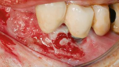 Oral implants are highly successful and offer long-term benefits, especially in the rehabilitation of edentulous patients or patients with oral defects following ablative tumor surgery (Albrektsson and coworkers 1986), and also after radiation therapy (Schiegnitz and coworkers 2014). With the number of implants placed globally going into the millions, implant dentists have observed some rare adverse events. Although carcinogenesis around implants is an exceedingly rare phenomenon, we recently reported about 15 patients treated for carcinomas adjacent to implants at our clinical department over a period of fifteen years (Moergel and coworkers 2014). The following case represents a patient of this cohort; it discusses possible risk factors and makes suggestions for a recall schedule. A 70-year-old woman was referred to our outpatient department for evaluation of a rapidly growing macroscopic alteration of the mucosa in the left mandible.
