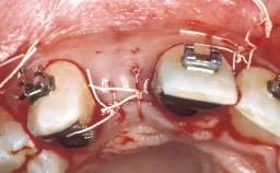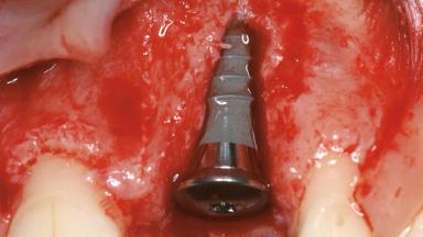In September 2004, a 38-year-old female patient, a nonsmoker, was referred to our clinic for the replacement of the missing left central maxillary incisor (tooth 21),which had been removed two months before the initial appointment due to a vertical root fracture. The dental patient history revealed that the tooth in question had supported a ceramo-metal crown for more than ten years before the root fracture occurred. Implant therapy (single-tooth replacement) was considered the first therapeutic choice, as the neighboring teeth did not require significant restoration. The patient was in good general health, and her medical history revealed no significant findings.