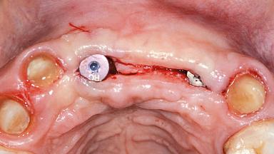 A 38-year-old woman presented with an esthetically unacceptable fixed partial denture replacing teeth 11, 21, 22. She had lost these teeth due to trauma when she was a child. The patient was not in pain but very concerned based on her previous experience that dental treatments had never satisfied her esthetic expectations. She was in good general health and reported no regular medications. No periodontal disease was noted despite the fact that the buccal flange of the prosthesis impeded cleaning of the tooth abutments. The patient did not smoke and complied with home maintenance requirements, as evidenced by her good oral hygiene status.