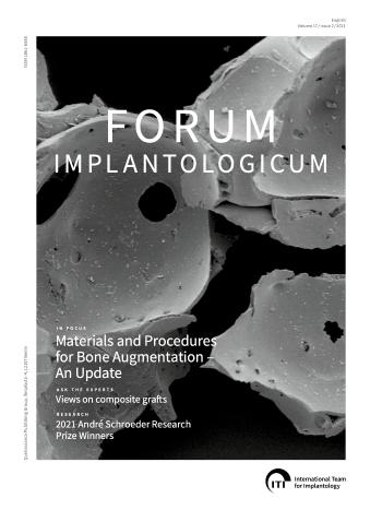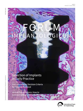 As of 2022, Forum Implantologicum is published in digital format on a dedicated online platform. Access is free to everyone (free ITI account required to read the full articles).