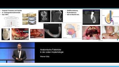 Diese Vorlesung bespricht anatomische Grundlagen sowie Fallstricke und ihre Implikation für implantologische Praxis, insbesondere den Verlauf des Nervus alveolaris inferior mit anatomischen Varianten und Subtypen. Nach den neusten Erkenntnissen zu Normvarianten des Foramen mentale und des Nervus incisivus inklusive der potentiellen neurosensorischen Problemen folgt eine Besprechung lingualer Defekte (unter sich gehende Stellen, Crista mylohyoidea, Stafne-Defekte) und lingualer Gefäße, die von Bedeutung für den Implantologen sind (v.a. Abgänge der A. sublingualis/A. submentalis). Abschließend gibt es eine kurze Exkursion zu Normvarianten und Pathologien des Sinus maxillaris inklusive Underwoodsche Septen und zu den arteriellen Gefäßen in der fazialen Sinuswand.
