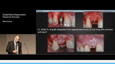 In this well-structured lecture, successful guided bone regeneration (GBR) is defined as a procedure that achieves predictable bone regeneration that is maintained over time. Discussion of local factors affecting the outcome of GBR is guided by the presenter’s own experience and research and includes: type of defect; type of membrane and its occlusive properties; implant surface; and primary wound closure. The influence of systemic conditions such as diabetes on the success of the GBR procedure is discussed. The presenter also considers the fate of regenerated bone following functional loading. Numerous clinical cases illustrate how the GBR procedure is used to address large bony defects, exposed threads, and ridge and socket preservation.