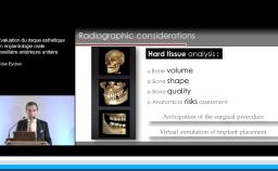 Le point central est l’objectif prothétique puisque la position tridimensionnelle de l’implant placé lors de la phase chirurgicale est dictée par le résultat prothétique souhaité. Ainsi, l’orateur revient sur les critères fondamentaux à respecter pour positionner idéalement l’implant par rapport aux dents adjacentes et à la crête osseuse résiduelle. Ensuite, des méthodes de correction osseuse, gingivale et prothétique visant à améliorer le résultat final sont présentées. La classification retenue est basée sur la sévérité de la perte de volume des tissus osseux et gingivaux adjacents à l’édentement, avec pour objectif d’obtenir un résultat prothétique harmonieux.
