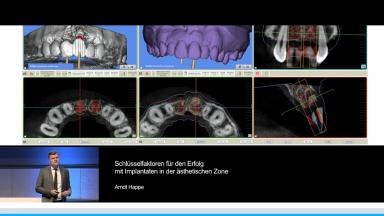In seinem Vortrag präsentiert Dr. Arndt Happe einen Überblick über die Schlüsselfaktoren für Implantatästhetik, insbesondere die korrekte 3D Implantatposition, ein stabiles Knochenvolumen, die adäquate Weichgewebsdicke und -qualität (biologisches Siegel), die transmukosale Form, das Material und die Oberfläche von Abutment und Restauration, sowie die Entwicklung und den Erhalt der Weichgewebskontur.