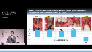 インプラント周囲炎は14.5%の症例に2mm以上の骨吸収を生じるが、標準的な治療法が確立されていないことが問題である。この講演ではインプラント周囲炎における外科療法について症例を交えて言及する