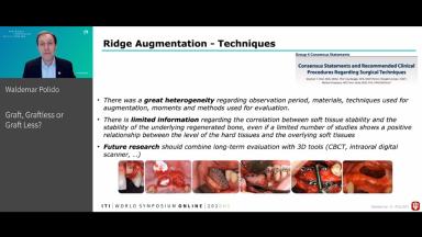 This congress lecture will address a common issue in implant dentistry: bone deficiency in patients. Clinicians often need to explain graft options to improve outcomes. While bone grafting leads to ideal dentoalveolar reconstruction, it's invasive, costly, and demands high expertise. Alternatively, graftless methods like tilted, short, or narrow implants offer a way to avoid grafting but may have biological or mechanical limitations and aren't suitable for all patients. Advances in digital planning, biomaterials, and implant design now allow for minimal grafting, targeting specific sites for smaller volume bone reconstruction. These methods are more predictable and provide better bone support and implant positioning.