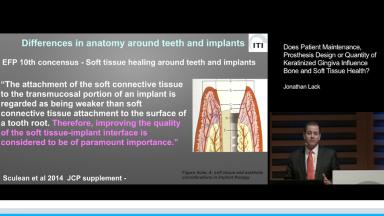 Based on a description of the differences between periodontal and peri-implant tissues, peri-implantitis and peri-implant mucositis are defined. Preventive measures to avoid peri-implant infection are listed, and treatment strategies are outlined, including cumulative interceptive supportive therapy (CIST) for peri-implant mucositis and peri-implantitis. The available and increasing evidence for the importance of a zone of keratinized peri-implant mucosa to preserve healthy peri-implant tissues long-term is presented. Finally, the lecturer underlines the importance of designing prosthetic superstructures with adequate access for proper diagnostics and home care for the patient.