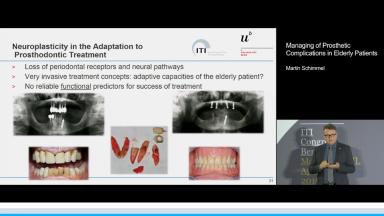 This lecture presents demographic data on patients seeking implant treatment as well as information about the elderly patient population as a whole. The relationship between aging, tooth loss, and the need for implants is presented in detail. Novel approaches for the treatment of edentulous patients are shared along with details about treatment modifications necessary in the elderly. Special emphasis is given to digital workflow techniques related to denture production. Common complications seen in this patient population are explained, and the importance of oral hygiene in the prevention of maintenance-related complications is underlined. Technical complications such as aspiration or swallowing of dentures or implant parts are also discussed. The important role of loss of autonomy in elderly patients is explained as a risk factor for complications.