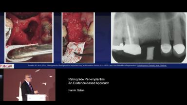 This is an overview lecture on retrograde peri-implantitis. The definition, prevalence, and risk factors of retrograde peri-implantitis and related problems are discussed. Assessment, classification systems, and diagnosis of peri-implantitis are described. The latter part of the presentation concentrates on possible treatment options and current available evidence highlighting that prevention is the best treatment. Clinical cases are presented demonstrating long-term follow up.