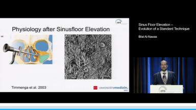 This lecture covers key aspects of the sinus floor elevation procedure. Indications, drawbacks, tips, details of the technique, graft materials, management of complications (especially membrane perforation), and predictability of the procedure are explained and supported by evidence-based literature. Good-quality illustrations give insight into surgical recommendations, and interesting case presentations help to better explain the technique.Closed and open sinus elevation techniques are described didactically, and a variety of possible complications are shown. This presentation delivers knowledge in a specialized field of oral implantology in a concise yet comprehensive way. The importance of short implants in combination with sinus floor elevation procedures is emphasized in accordance with the title of the lecture – as a step in the evolution of this technique towards smaller windows and shorter implants.